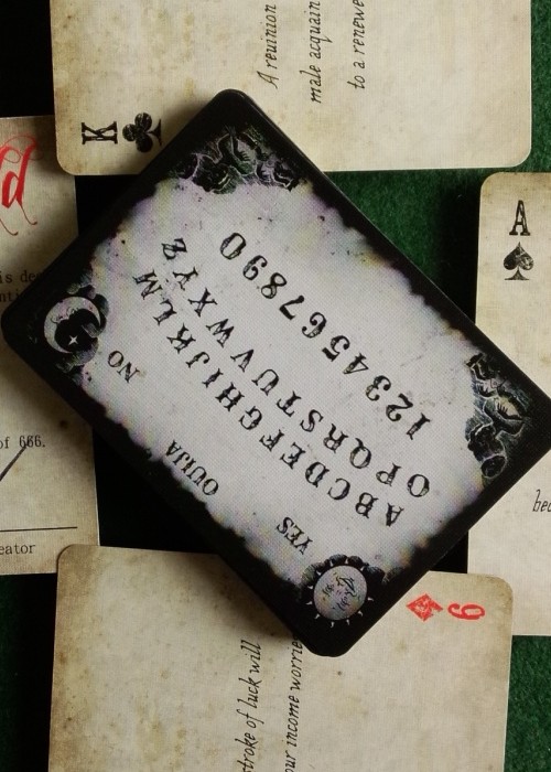 Reader of Minds is proud to present Simon Vanderbelt’s wonderful Ouija Deck! This limited edition deck of playing cards (limited to 666 decks) come complete with signed certificate of authenticity and instructions. These amazing playing cards are many things rolled into one: * First and foremost these are a high quality deck of cards printed on first class stock. We have seen with our own eyes card magicians manipulating them and nodding in approval! * Secondly they are a reading system. Each card features a fortune telling phrase based on an old Ukranian reading system. The cards come complete with instructions on how to utilise this system. * The cards are marked and are one way on both front and back. * The cards come complete in a stylish cardboard box which continues the Ouija theme. * And of course the cards feature the iconic (and very cool) Ouija board design on the back. These cards will draw admiring glances and generate much interest wherever you use them.