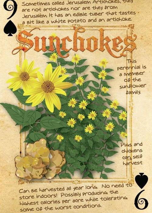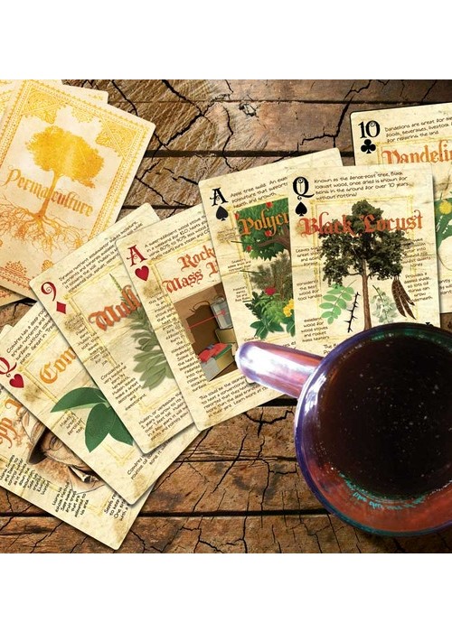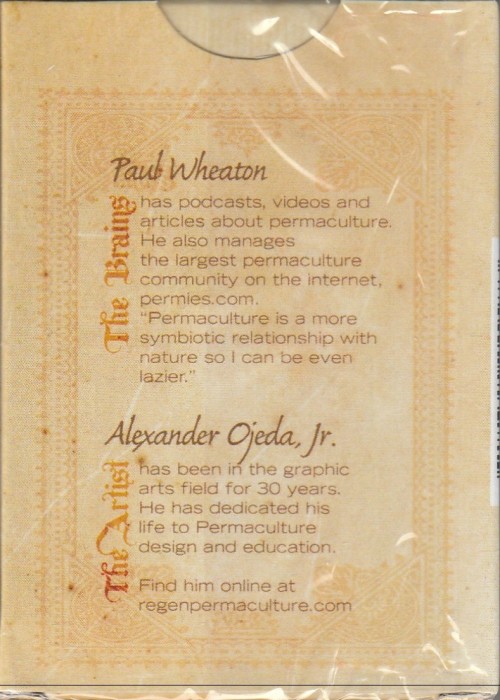 While these are fully functional poker cards, their primary purpose is to show people the rich diversity of permaculture. Permaculture embraces gardening well beyond organic, plus natural building, greening the deserts, alternative energy, feeding the world and blazing a trail for less toxic living. These cards were created with the idea of what would be a great holiday gift that I could give to my friends and family that thinks my permaculture lifestyle is crazy. Something they would enjoy, and that might make me seem less crazy and it’s a stocking stuffer too! 26 cards have a name hidden on them and one card has a hidden needle. Special markings for the suicide king and the one eyed jacks.