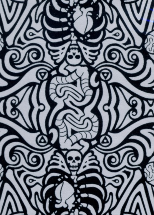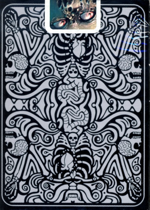 Póstumo is the creation of Obsidian Abnormal and Darren J. Gendron, mixing playing cards with zombie inspirations. It’s printed on Bicycle-grade paper from the USPC. We remixed the suits into spades, clubs, hearts and brains, taking literal representations of each. Spades are now actual shovels, while clubs are shown as bats and other blunt objects. Hearts take on a fleshy connotation. Diamonds are replaced by the most valuable thing to a zombie – BRAINS. https://www.kickstarter.com/projects/dernjg/postumo-the-deck-of-the-dead/description