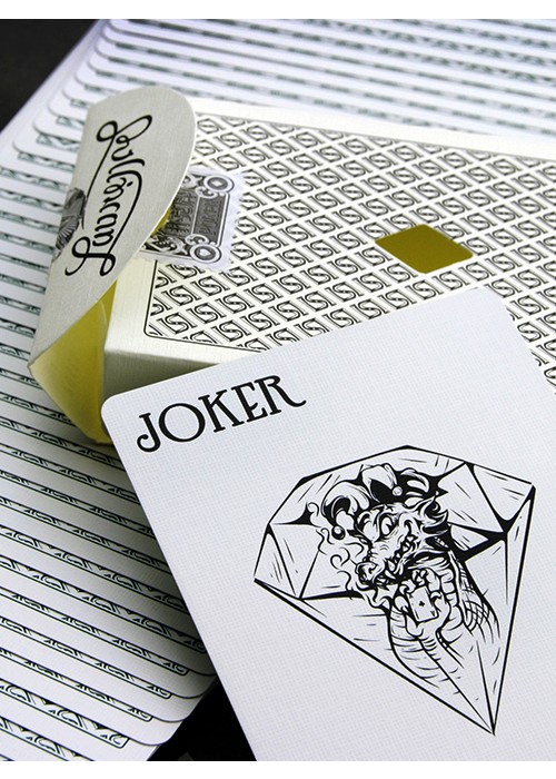 Lawrence Sullivan and the Legends Playing Card Company information: One of the most sophisticated marked decks in the world, printed on the entirely new Classic Finish. The suits and values can be read by someone who has trained their eyes. A deck this advanced should cost well over $100 if you know what to look for. Decks with similar technology but made by hand by professional hustlers cost well over $150. A closely guarded secret in the playing card world, the secret is out and ready to be shared to those who are knowledgeable in advantage play. These decks are for entertainment use only. Though inspired by and similar in look to David Blaine\’s White Lions playing cards, the marking method is completely different. These decks feature factory printed white on white \’shade\’. A process which is extremely difficult and required extensive experimentation to perfect. This means that to the naked untrained eye, it is very difficult to see parts of the card back jump around or move when the \’riffle test\’ is performed, nor will the coating be affected like expensive decks which are juiced by hand.