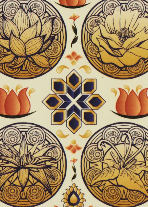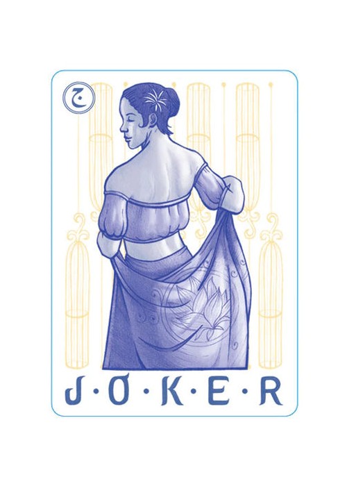 Vegetation is an important feature in this early deck, so we have assigned a plant important to the culture and economy of Islamic empires, visible in the backgrounds and in the hands of the Queens: the Lotus for the Hearts, the Blue Egyptian Water Lily for Diamonds, the Poppy for Clubs, and the Cumin Flower for Spades.