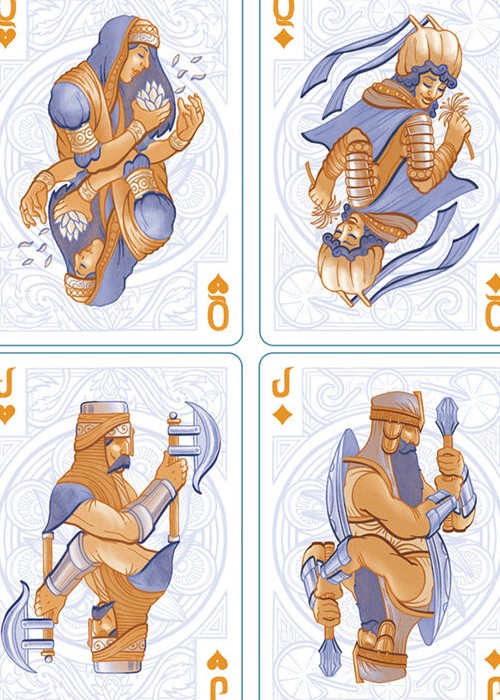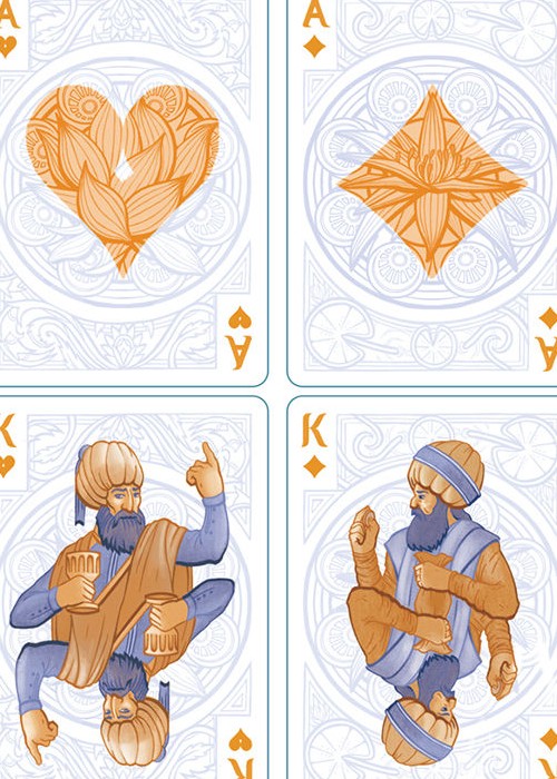 Deco Playing Cards’ debut deck is inspired by one of the oldest-known deck of 52 playing cards from Mamluk Egypt, discovered in a museum in Istanbul. The artist of our deck is Dave Boyd, and the designer of our custom tuck box is Katy Orr.