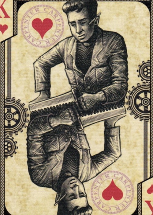 Dedicated to all the hard workers who understand what it’s like to actually do an honest day’s worth of work. These are the men and women who earn their rights to relax with that cold glass of beer at the end of the day. These Bicycle decks where designed by Johnny Whaam. The fine detail of each hand drawn card is reminiscent of a hard working America