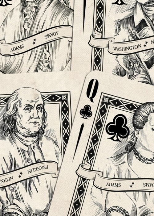 Limited Edition version with paper wrap and stamp. https://www.kickstarter.com/projects/2060803491/colonial-unrest-playing-cards-printed-by-uspcc
