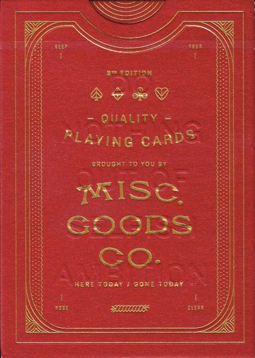 MCGO v3 Playing Cards is a completely redesigned deck of playing cards. The illustrations on the cards have been redone; from the tuck case to every symbol, court card and even the typography. It has beautifully colored card backs and tuck case. In addition, the red colored pips for Diamonds and Hearts form an intriguing contrast with the black design, particularly with the court cards. SPECS: – Made in America by United States Playing Card Co. – 56 card deck – Bee coated paper – Blind tuck case emboss – Foil lettering on tuck case – Regulation size 3.5 by 2.5