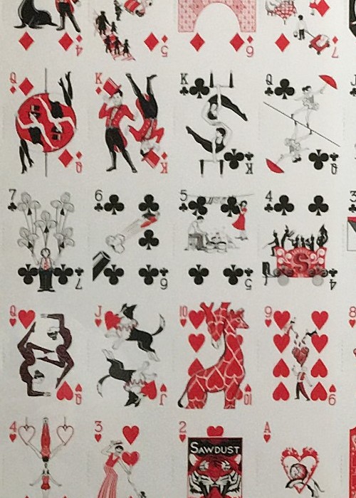 Funded as a Kickstarter project on September 25, 2014 with $29,091 pledged from 722 backers, this was a single deck also available in uncut form with a number of art related add ons. Designed by Emmanuel Jose as his third semi-transformation deck, it features a circus theme with all original artwork cut by hand out of paper with a scissors. This USPCC printed deck features 54 fully custom cards (including 2 jokers) and the custom back in a semi-transformation style. Every element of this breathtaking deck was created entirely by hand, he did not use digital software, or pen and ink. Every design was painstakingly crafted out of paper. Emmanuel created 1 card per week for an entire year to finish the complete deck! The back design was created to appear like an admission ticket to the circus. The entire deck has a black, white, and red color scheme, which extends to the striking tuck box. This PCDB Entry is for the UNCUT version of the deck. https://www.kickstarter.com/projects/emmanueljose/sawdust-circus-playing-card-deck-uspcc-printed http://emmanueljose.com/ Sawdust also won the Best Uncut Sheet award from UnitedCardists 2014 Deck of the Year http://unitedcardists.com/viewtopic.php?f=8&t=6448