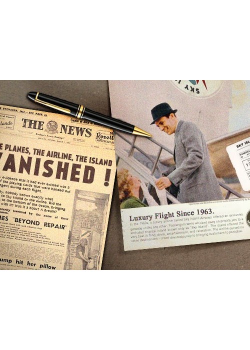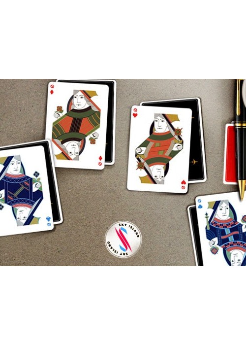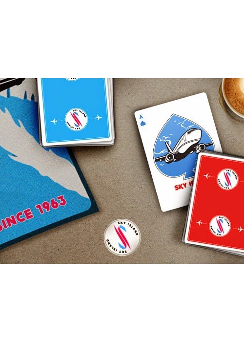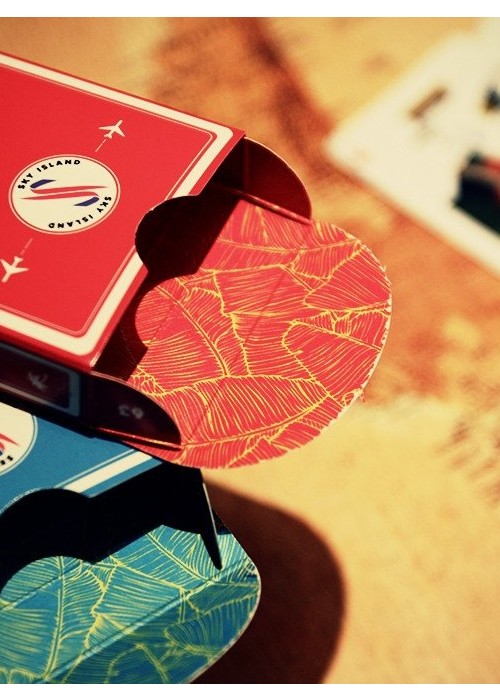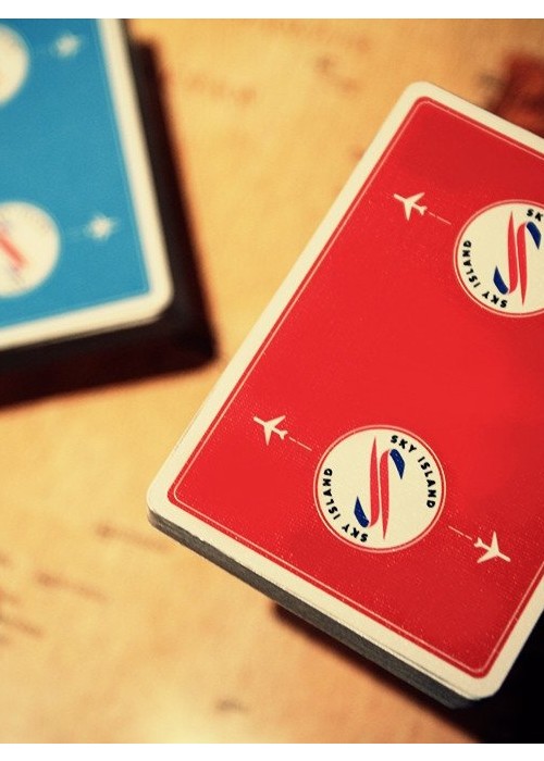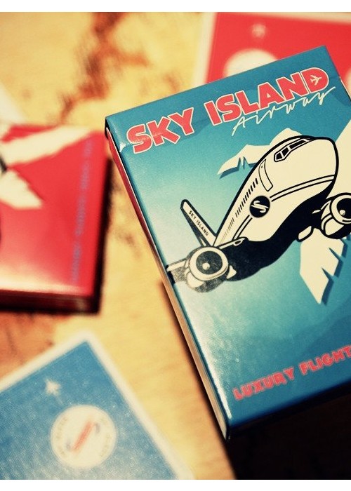 In the 1960s, a luxury airline called Sky Island Airways offered an exclusive getaway unlike any other. Passengers were whisked away on private jets to a secluded tropical island known only as Sky Island. The island offered the very best in food, drink, entertainment, and relaxation. The airline served no other destinations – it was devoted purely to bringing customers to paradise. With a small fleet of aircraft and only 10 occupants allowed on the island at one time, it was truly a privilege to access this modern Eden. One day, it all vanished. The planes, the airline, and even the island itself. The only evidence that it had ever existed was a supply of the playing cards that were handed out to passengers during each flight. To this day, nobody knows exactly what happened to Sky Island or the airline. Did the island sink to the bottom of the ocean, bringing the planes with it? Was it a hoax? A dream? -Printed in Taiwan by Expert Playing Card Company -Durable Stock and Master Finish -Completely Custom Artwork -Inside Tuck Printing -Only 2500 Each Made of Red and Blue
