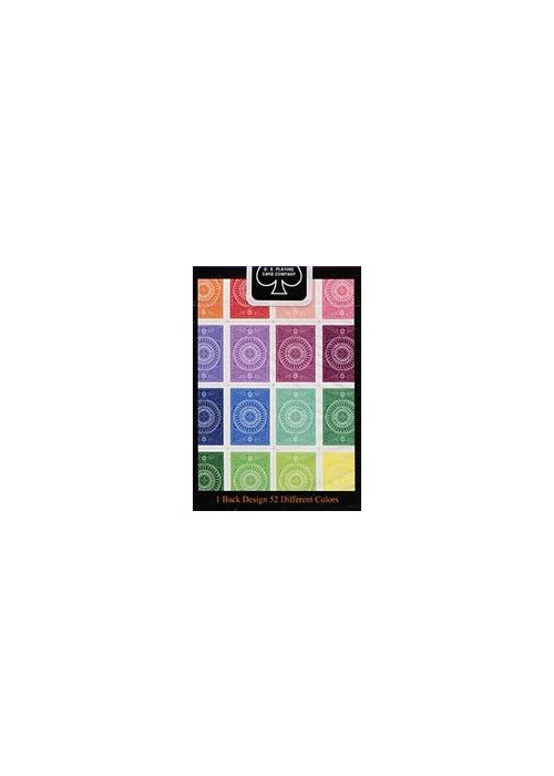 Created by Cosmo Solano, The Tally Ho® SPECTRUM deck is the worlds only official Tally Ho® rainbow deck! 54 Cards, 1 Back Design, 54 different colored backs The cards are manufactured by U.S. Playing Card Company, on high quality stock with the “Linoid Finish”. Custom Jokers and a custom Ace of Spades have been designed for this deck as well, there is a built in “reveal”! About the Cards: 51 standard face playing cards 1 custom designed Ace of Spades 1 custom designed regular Joker 1 custom designed guarantee Joker w/reveal 2 special gaff cards Premium quality Tally Ho® stock Custom tuck box Specially packaged in Si Stebbins stack order