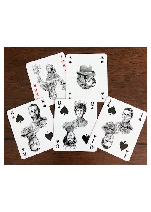 This is a set of reproduction of a deck of playing cards that were included in Fortnum and Mason’s Tommy’s Tim, originally distributed by the King and Queen to the Commonwealth soldiers fighting WW I. Fortnum and Mason’s released the reproduction of the Tommy’s Tin in 2014. The deck is miniature deck, about 2 inches square.
