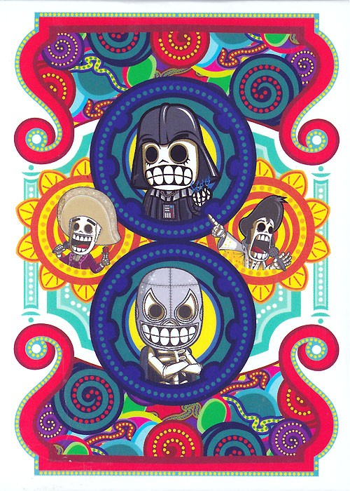 Based on the Calaveritas brand created by Javi Molner, Creative Director of Maya Studio. The tuck box notes that this is Number 12 (Numero Doce) but it is unclear if this is 12th in a series of Calaveritas decks or 12th in a set of decks released by the distributor.
