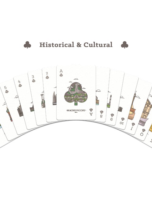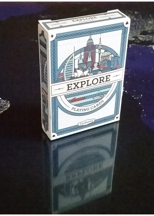 Funded as a Kickstarter project on January 19, 2015 with $12,135 AUD (apx $9,300USD) pledged from 337 backers, this was a single deck project with uncuts, prints and other add-ons. Created by Harris Soetikno and designed by Daniel Haire & Tonia Gao, this deck showcases 52 popular destinations around the world. The deck was printed by USPCC on Bicycle stock with Magic finish. This PCDB Entry is for the actual deck, of which 2,500 were printed (per message from creator). https://www.kickstarter.com/projects/2895614/explore-deck-sit-back-play-imagine