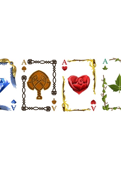 The Nobles of Erden have made it to the gaming world as playing cards. Four of the most important factions are now featured as the four suits. With Custom Pips to match. Elves, Dwarves and two human factions.