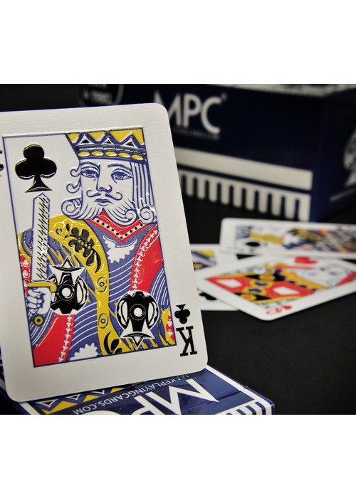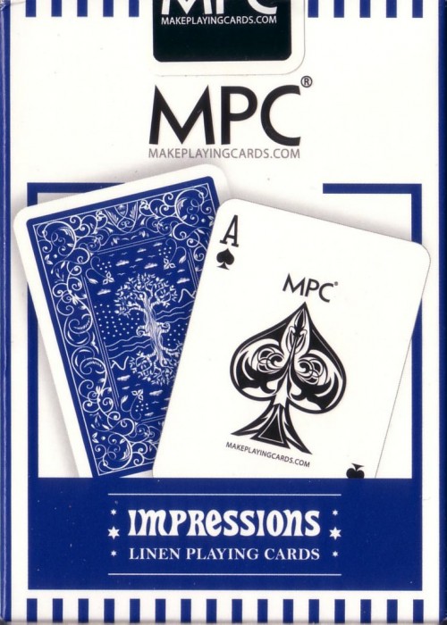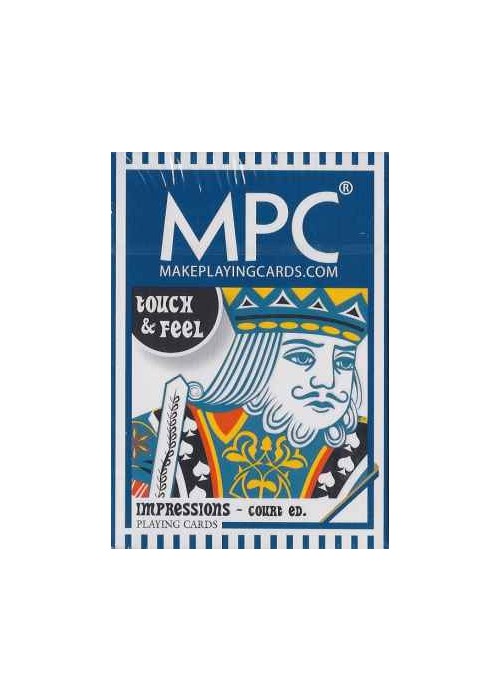 Cards from MPC (MakePlayingCards.com) that use raised/textured ink on the cards. This version is the full color and large sized courts edition. https://www.kickstarter.com/projects/makeplayingcards/impressions-playing-cards