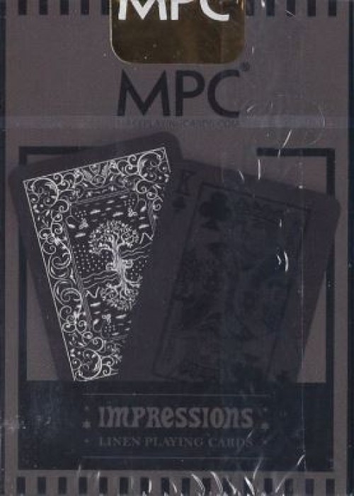 Cards from MPC (MakePlayingCards.com) that use raised/textured ink on the cards. This version is the Stealth version which is a blacked out edition. https://www.kickstarter.com/projects/makeplayingcards/impressions-playing-cards