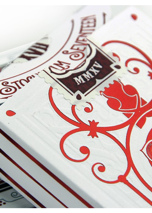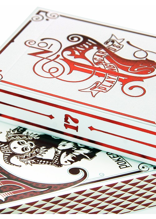For this project the deck was revised with new and modified face cards, back and tuck and was available in Bicycle branded, unbranded, plus a special Crown Edition hand created tuckcase with the same size and face cards. It was printed by USPCC on Bicycle Stock with 56 cars including 3 jokers and a gaff card with a custom seal and embossed tuck used on both decks. The deck as also available as an add-on in uncut format. In addition, mini and micro formats were available as gifts with larger sized tiers which were printed by MPC (MakePlayingCards.com).