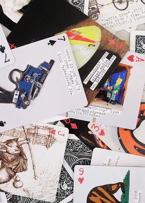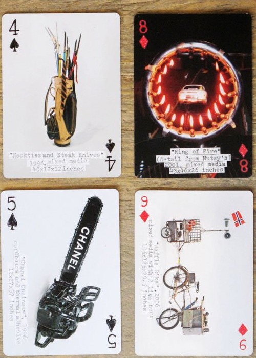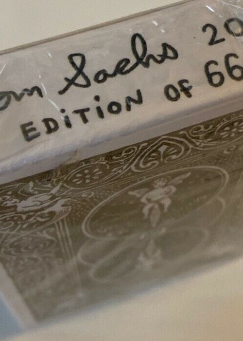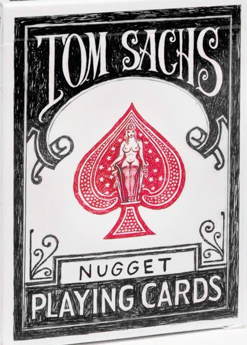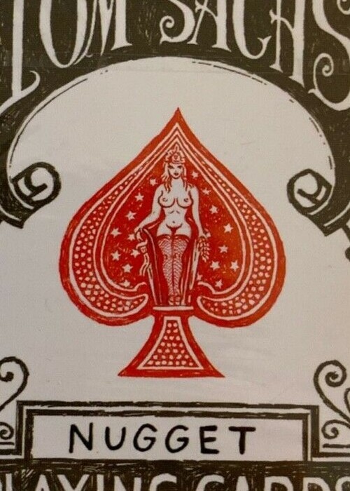 This is the third and FINAL edition of Nugget Playing Cards. This edition is black because black is the color of death, the end of life. Same deck you know and love: Casino-quality playing cards. Each card gets its own Tom Sachs piece. Produced in collaboration with Genevieve Hanson. Manufactured by Make-a-Deck in Salem, NH. 3.5 x 2.5 x .75 Edition of 666.
