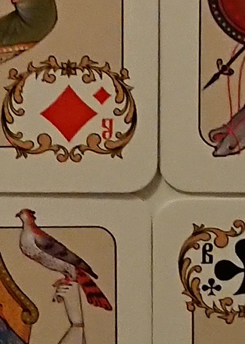 This deck was published in Russia in 2015, designed by Alexey Orleansky. The deck has 36 cards + 2 Jokers. The card size is 56 x 90 mm. The courts and the Aces have the traditional Russian indices.