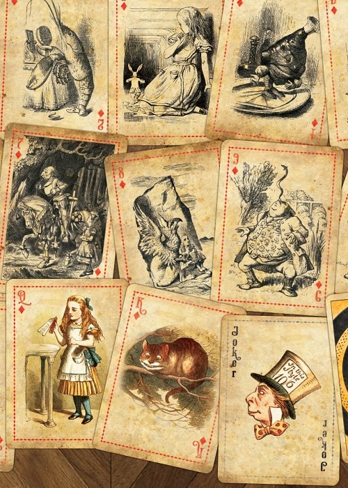A lovely deck of playing cards featuring the classic Tenniel illustrations from Alice in Wonderland and Through the Looking Glass. The face cards all feature colour illustrations, whilst the point cards have black and white. All the cards have a great vintage finish, these are super high quality 340um (thickness) playing cards, for a really professional feel. Designed and manufactured in the UK. These are standard, poker sized playing cards (64 89 mm) Based on the classic Tenniel illustrations A wonderful vintage finish Features both colour and black and white art 52 standard playing cards plus 2 jokers A different piece of art on each card, plus the joker.