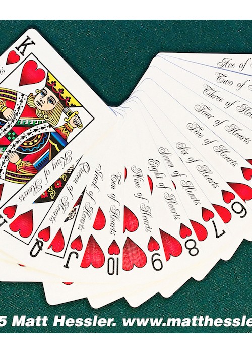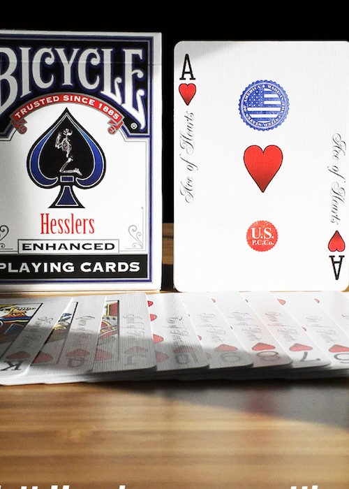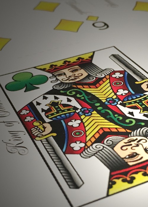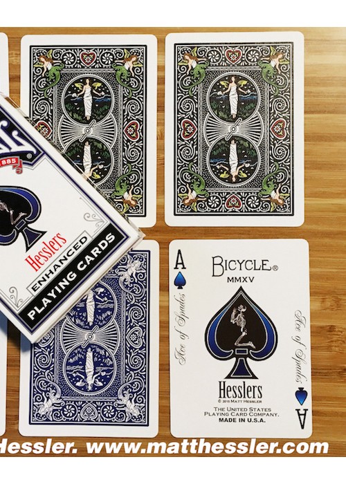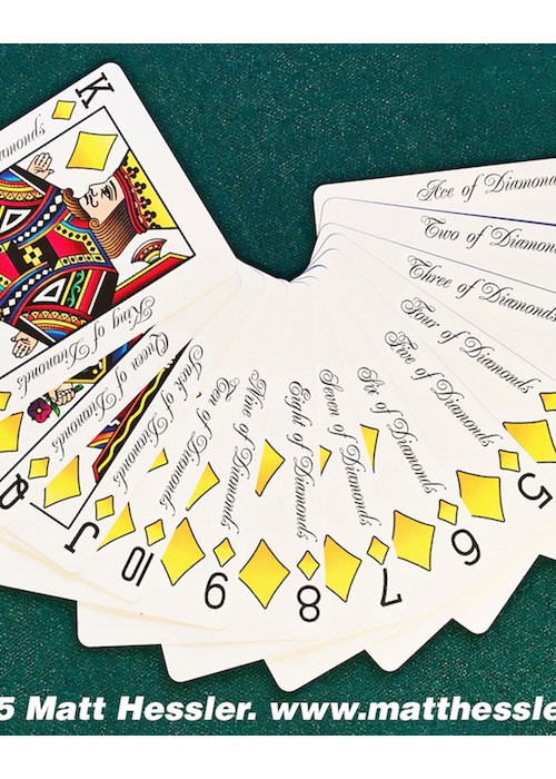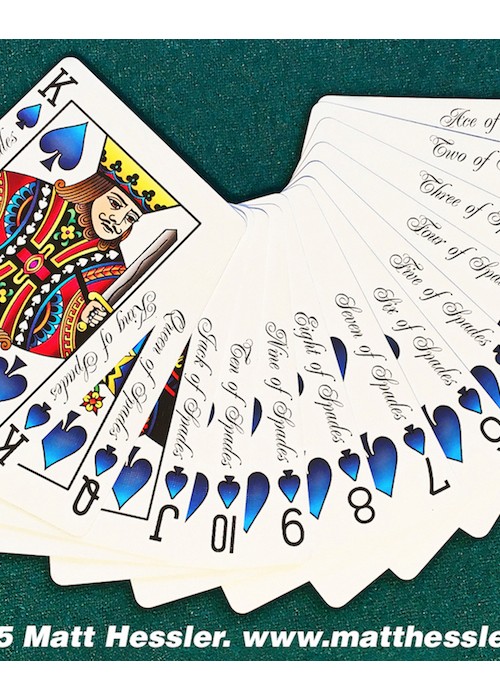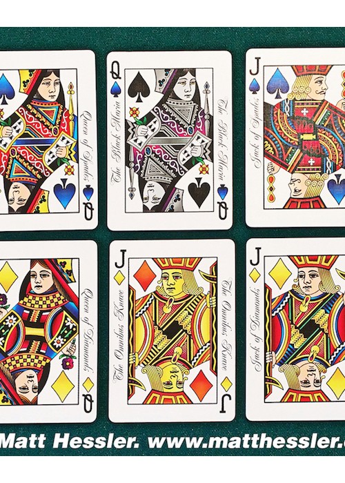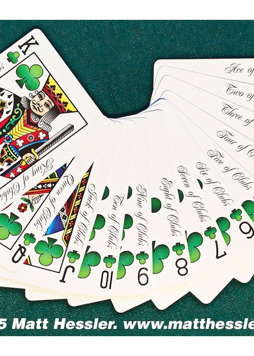 Standard size black indexes with four differently colored suit markers; green clubs, yellow diamonds, red hearts and blue spades. Easily recognizable suits help to speed up the play time of any game by visually separating them with only a glance. Perfect for Texas Hold’em, Rummy, Hearts, Spades, and any game that traditionally uses multi colored decks such as Bridge no-revoke, Italian Machiavelli, and German Skat.