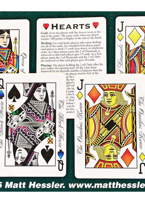 56 cards including a special Black Maria card and the rules for playing the game of Hearts.