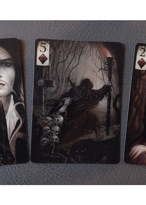 A lavish hand-painted gothic themed deck of playing cards, featuring beautiful artwork of Vampires, Dark Angels and Night Creatures.
