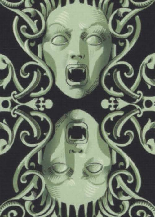 Grotesk Macabre is the evolution of Grotesque, which was the UC2014 annual deck. Taking this deck as a starting point, I tried to create my own vision of the Underworld. Although a joyful and positive person myself, I had always been attracted to dark themed artwork. I find fascinating how artists throughout the centuries have imagined the world of the dead and how they dealt with the greatest fear of mankind. In Grotesk Macabre I tried to combine the darkest of all themes with the heavy elegance of baroque and the pointy, flamboyant Gothic art.
