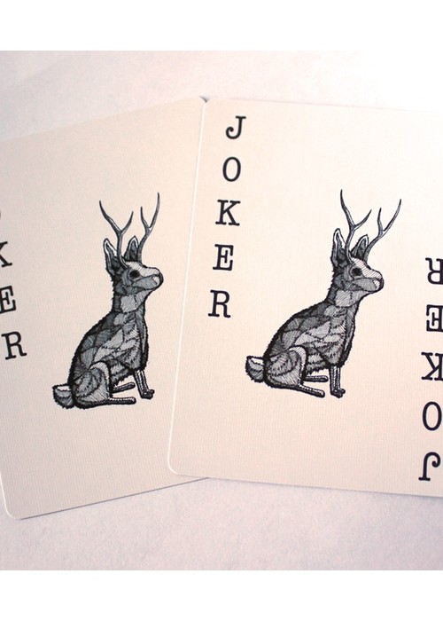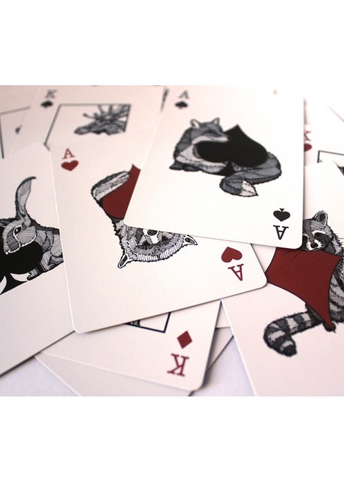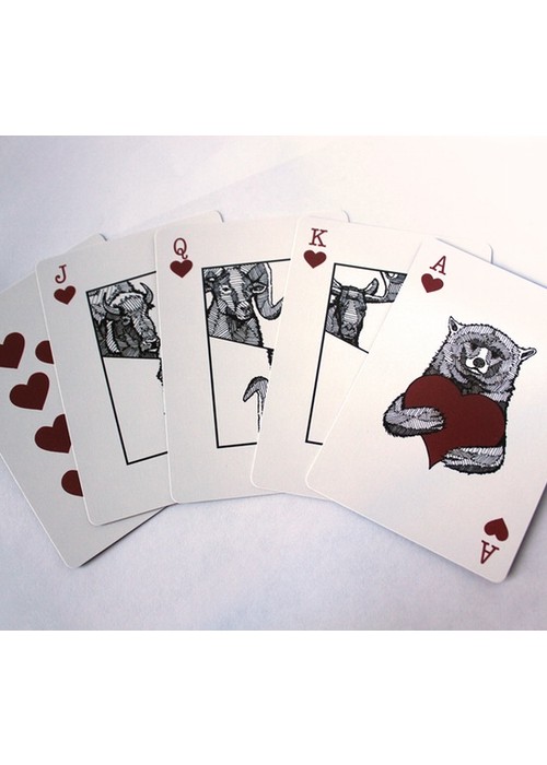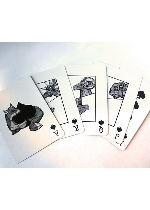 A deck of cards featuring animals of North America illustrated in pen and ink by Joel Russell Huffman.