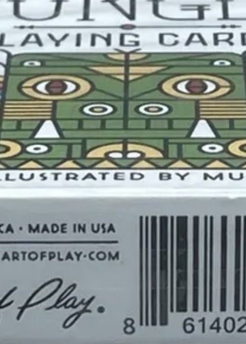 Bursting with vibrant colors and raw animal magnetism, the savage design of this deck was inspired by the lush jungles of Africa. Each custom illustrated card features iconic flora and fauna from the Zulu wilderness. Monkeys, parrots and jungle cats run wild throughout the pack. The jungle tuck case was printed on an antique Heidelberg letterpress to give the colors a vintage washed look that compliments the eye-catching graphics inside.