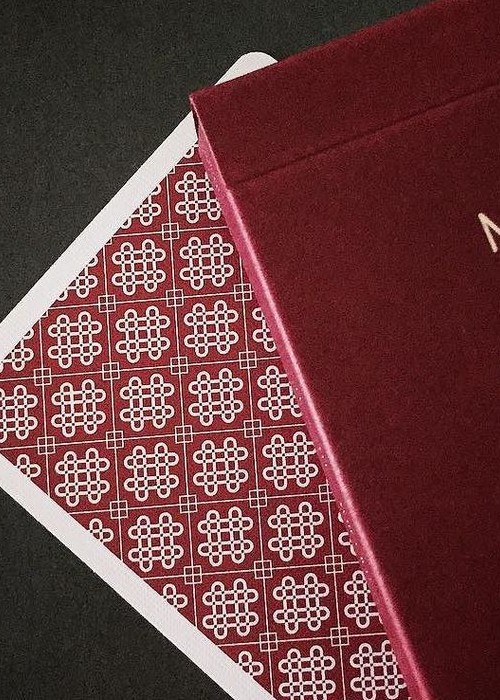 Everything about the Raspberry Mint Deck is custom. The faces include custom fonts, pips, court cards, and Ace of Spades.