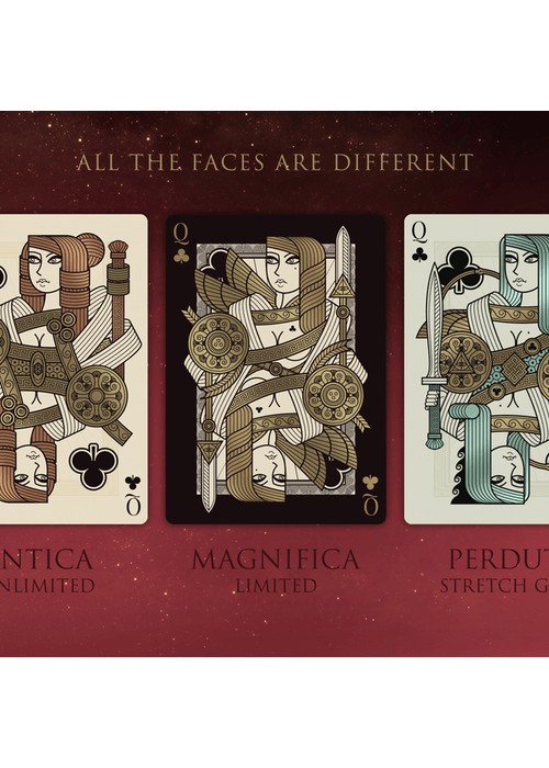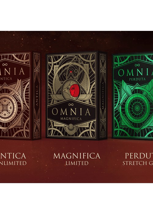 Three new custom decks of the Omnia Series by TWI (Thirdway Industries), designed by Giovanni Meroni and proudly printed by Expert Playing Cards Co. with Classic Finish. Based on the ancestors of the first Omnia, these decks will throw you in the Golden Age of the Omnia universe, full of treasures, heroes and war. Wealth, power and abundance