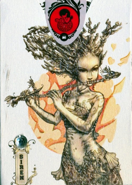 The siren deck is a project that was hand designed from scratch. A total of 1200 hours have been invested in this project. The deck is a combination of both traditional and digital process. The Diamond Edition Deck is printed with White Gold Curious Metallic paper and has a half diamond deco on the front of the tuck. Kickstarter link: http://www.kickstarter.com/projects/1503469489/siren-deck-ocm-workshop/