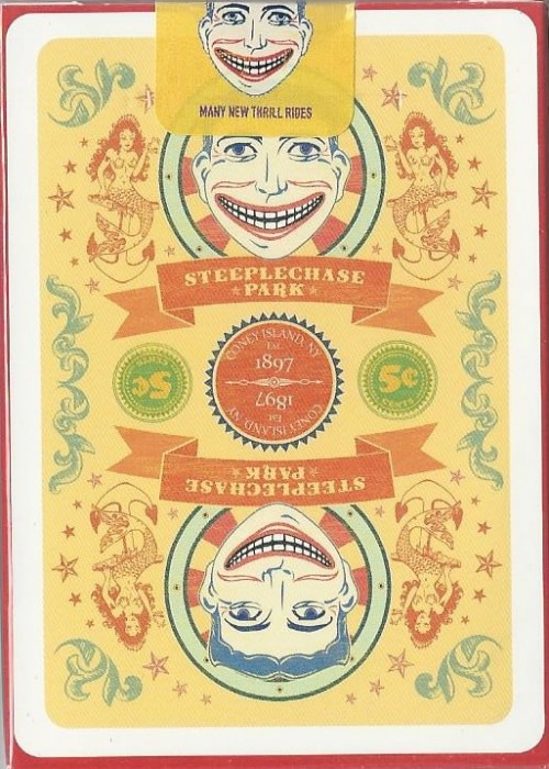 Designed by Jared Hansen, the Steeplechase Park deck is a tribute to Coney Island’s original and longest-running amusement park. The back design is wildly colorful and vibrant – a perfect deck for summer. The faces have been completely recolored, and you received matching custom Jokers, a custom Ace of Spades, and 2 useful gaff cards. The custom tuck box is closed with a custom sticker seal. Printed by USPCC on Bicycle stock with premium Magic finish, the deck feels and handles wonderfully while the traditional cut makes shuffling a breeze. Only 2,500 decks printed! -Designed by Jared Hansen -Limited Print Run of 2,500 -Colorful, Vibrant Back Design -Custom Colored Faces & Court Cards -Fully Custom Ace of Spades & Matching Jokers -Bright Custom Tuck Box & Custom Sticker Seal -Printed by USPCC -High-Grade Bicycle Stock & Premium Magic Finish -Traditionally Cut -2 Gaff Cards Included