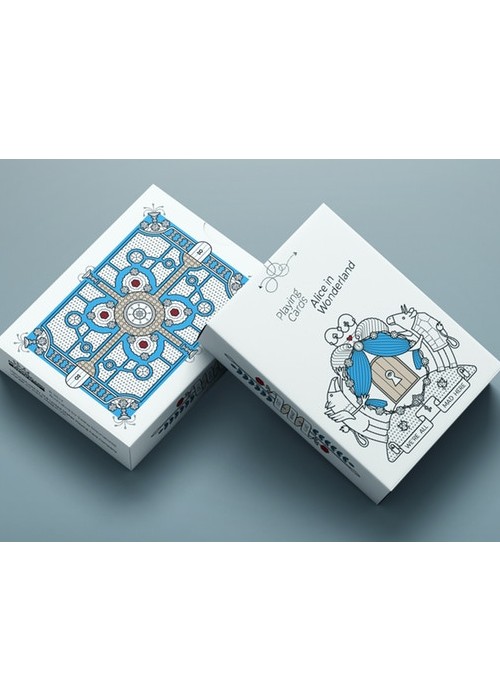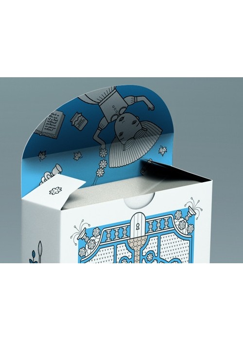 Fully custom deck, illustrated with characters from Lewis Carroll’s iconic “Alice in Wonderland”. The story is divided in a way, that allows to cover almost all main characters and key scenes. Only 30 Printed by MPC. 52 cards + 2 jokers on 310 gsm french paper with linen finish, in printed glossy tuck box, with custom seal, plastic wrapped.