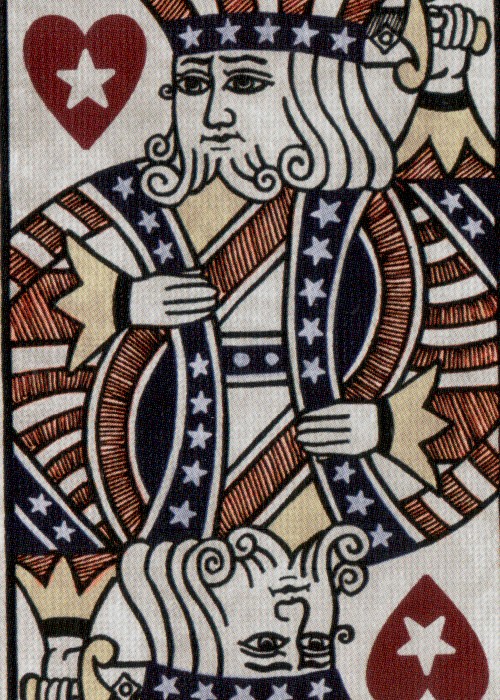 A whole new way to show your patriotism. Bicycle® is an iconic American brand proudly made in the USA for over 130 years. The Bicycle® American Flag Playing Cards celebrate our American heritage and history. These hand-illustrated cards feature images of the stars and stripes in unique pips and face cards, and include references to the brand’s historical card back and tuck design. Hand drawn style Unique court cards and pips (Club, Heart, Spade, Diamond) Classic Air-Cushion Finish® Printed on premium Bicycle brand cardstock and Made in USA!