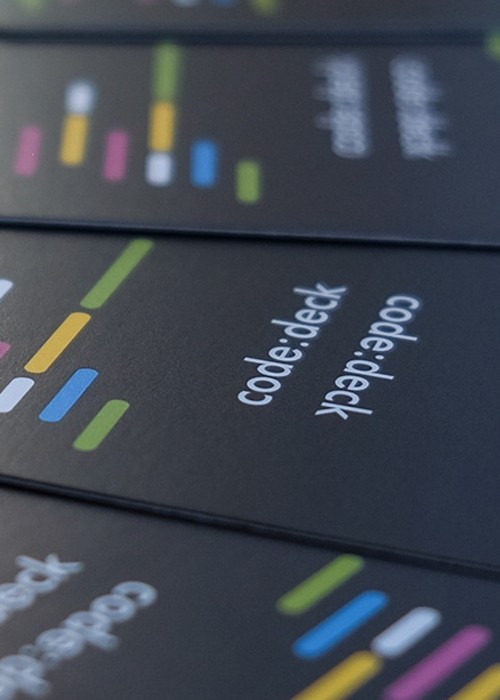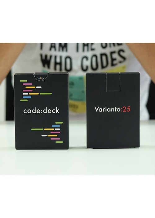 Scans of each card can be seen at www.marytcusack.com/maryc/decks/html/Cards/Coder2.html code deck (aka code:deck) was created by Varianto 25 (aka Varianto:25) in 2013. In 2016 they launched a KickStarter project to create a version 2 of the deck which would be referred to as the modern version and was available in either traditional matte paper or a plastic card version and shipped in 2017. https://www.kickstarter.com/projects/varianto25/code-deck-playing-cards We are a small startup based in Bulgaria and we make fun and innovative products for developers worldwide. We created code:deck a couple of years ago and now we need your help to make a better version of it. We have a brand new design and we are introducing a 100% plastic version. We’ve spent a lot of time searching for the best printing house partner for our new 100% plastic deck. Now that we have it, we’re confident that we can produce top quality plastic cards. Of course, all this comes with a price and that’s why we need your help. Plastic cards are a lot more expensive to produce, but we’re sure you’ll absolutely love them and it will be worth it.