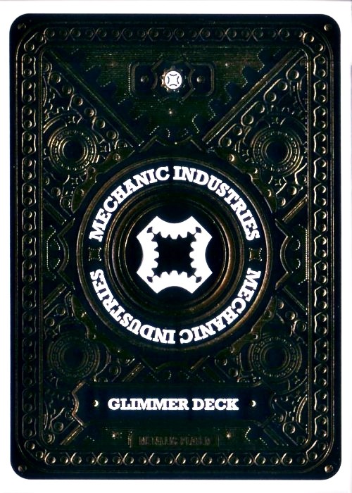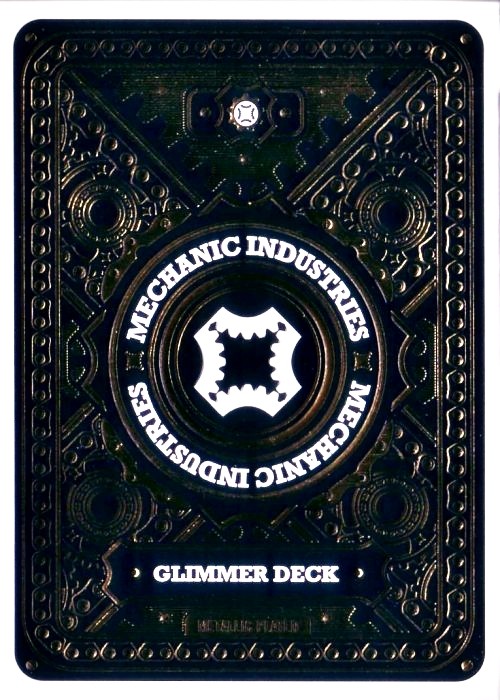 This very limited edition set has been created to celebrate Mechanic Industries’ 5th birthday in 2017. We have gone all out with fully stacked tuck cases embossed and wrapped with foil inside and out. Cards have metallic Pantone inks on both the backs and faces. The reflective nature of the card boxes can be leveraged to sneakily peek at what card is being dealt! The Glimmer and Shiner Decks feel great straight out of the box, printed by USPCC on high quality Bicycle stock with Magic finish. Only 2,500 Glimmer Decks will EVER be printed, and are available exclusively as part of this set. Features 1 Glimmer Deck and 1 Shiner Deck Flip-book animation and marking system Gold, Silver, and Red Metallic Pantone inks with black Joker gaffs compatible with Mechanic Industries’ Grinder coins Luxurious embossed tuck case with silver foil inside and out; can help you peek at cards Printed by USPCC on Bicycle stock with Magic finish Flip-book animated marked deck Both decks use Mechanic Industries’ trademark flip book animation. It works much the same as the Mechanic Deck and VR2 Deck, with some subtle adjustments. In this repeating 13 card back design system, the way the cogs turn allows the user to read the value each card. The suit indicator has now been enhanced and is simple to read. Your spectators will never suspect you can recognize any card at a glance.