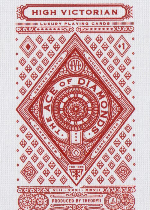 Every single playing card within the High Victorian deck was designed from scratch – even the Aces, Jokers, and court cards exude the grand excess of ornamentation quintessential to the Victorian era. In a word: breathtaking.