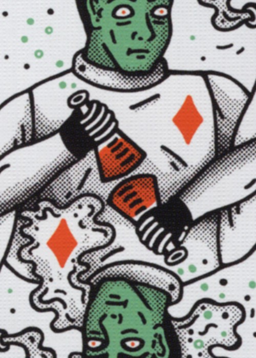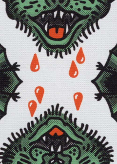 Embrace your inner weird. Inspired by our fascination with the strange and unusual we invite you to open a chamber of secrets and step Into the Weird with our latest custom deck of playing cards. Designed in collaboration with Jenny Gebhardt this unique deck features an adventure that unfolds as you shuffle. Follow along or create your own story with the 54 unique illustrations. Packaged inside a matching letterpress-printed tuck box. Beware as it unfolds into the void. Limited Edition of 5,000. Printed by the U.S. Playing Card Co. Wonders of an odd journey await. Full Deck Scan: https://cardscans.piwigo.com/index?/category/96-into_the_weird