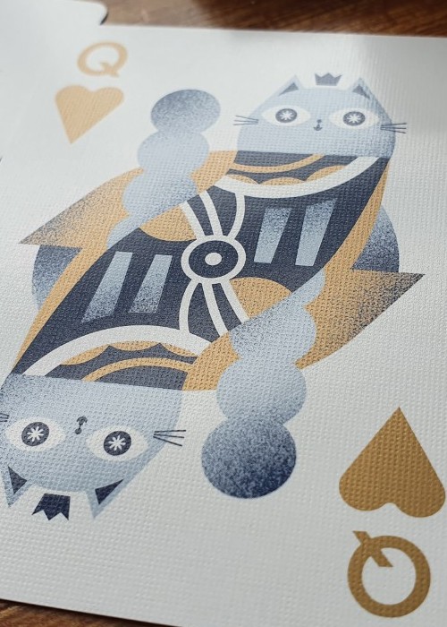 MEOW Deck Poker Deck for Legends Playing Card Co. From official artist’s site: https://www.malota.es/Meow-Deck https://www.pinterest.ch/pin/300193131414536633/ https://www.behance.net/gallery/67338929/Meow-Deck