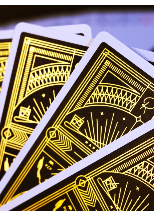 In 2013, Rarebit playing cards became an instant classic. Inspired by The Rarebit, a vintage, speakeasy bar and restaurant in Charleston, SC, Rarebit playing cards sold out almost instantly. In 2015, we brought the deck back – with Metallic copper ink. These sold out lightning-fast and became one of our most sought after decks EVER. Today, we welcome a new member of the Rarebit family: Rarebit Gold. Made in the USA Laced with GOLD FOIL on the actual playing cards, the Rarebit Gold deck features full custom court cards and a simple, elegant design by Jay Fletcher. They’re printed using FSC-certified paper derived from sustainable forests, vegetable-based inks, and starch-based laminates.