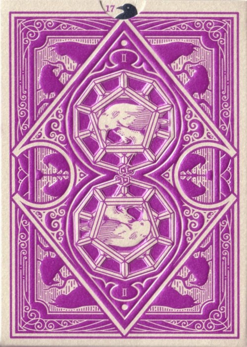 RAVN is back, in purple! A custom-designed deck of poker size playing cards designed by Stockholm17 for Caroline Ravn magician. They teamed up to deliver an elegant and classic looking deck of playing cards, with improved courts and standard faces. Perfect to perform magic tricks, cardistry, and of course to play at the green table.