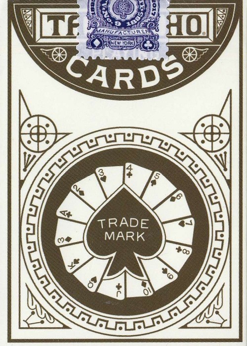 Andrew Dougherty’s famous Tally-Ho brand started in 1885 and is still printed today. The original deck had the Ace of Spades with the Centre Street address and a Jolly Joker card. The Tally-Ho Joker was introduced 20 years later in the early 1900s. Due to the British origins of the phrase “tally-ho” which is associated with a fox hunt, later versions included a fox hunting Joker. The original deck had a unique back and several versions were then used before settling on the familiar circle and fan backs.