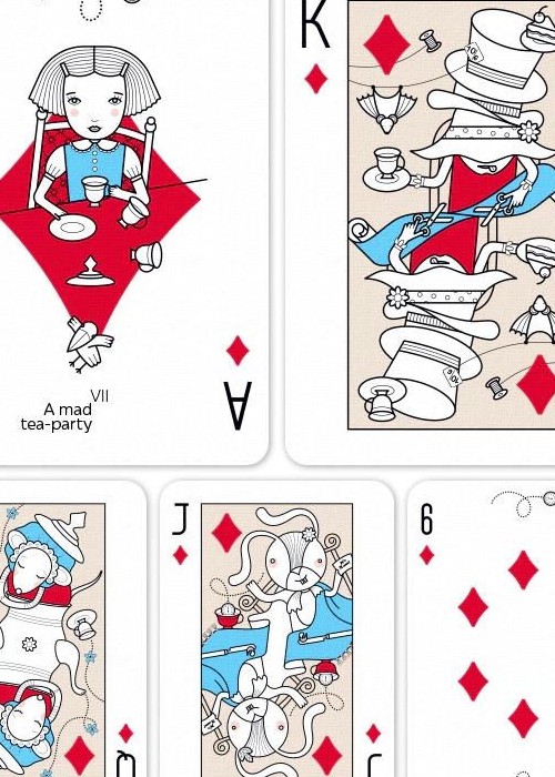 A fully custom deck, illustrated with characters from Lewis Carroll’s iconic “Alice in Wonderland”. The cards are designed in a way that covers almost all main characters and key scenes.