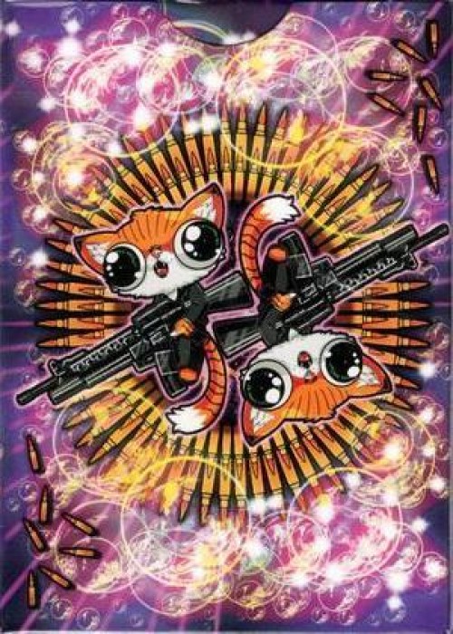 This CLAW-SOME card deck features kittens with weapons, beautiful fanning abilities, world-class stocks and finishes, HISS-TERICAL artwork, and an amazing built-in magic trick! What else could anyone want? A perfect gift to bring a SMILE to someone you love, or literally have them laugh out loud! A MUST for collectors, card lovers, magicians, cat lovers and card players. Show your CAT-TITUDE! We are PAW-SITIVE you are going to LOVE this hilarious and awesome LIMITED-EDITION professional deck of playing cards by underground playing card legend – De’vo vom Schattenreich — with artwork by Naiche Washburn. This deck started out as an April Fool’s joke in 2014 and has since become legend in the playing card world. This special, limited edition has some slight changes, new coloring and an awesome built-in magic trick AND a limited edition box! PURR-FECT! Full Deck Scan: https://cardscans.piwigo.com/index?/category/8-anry_pussies