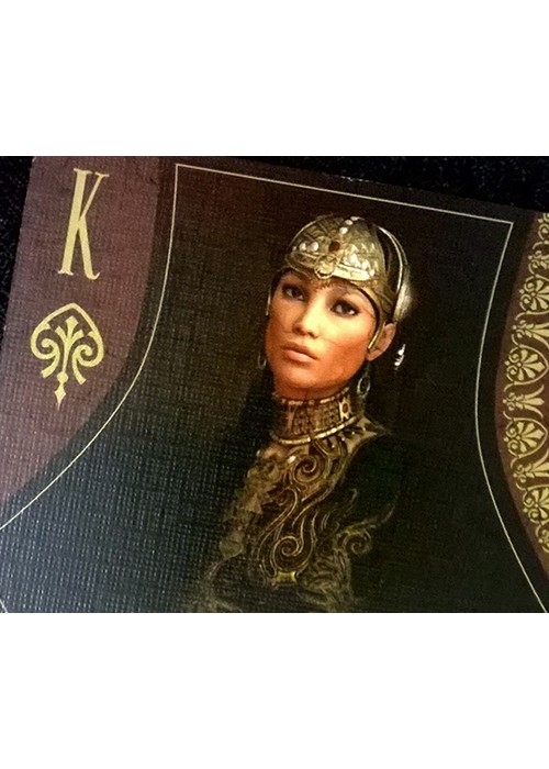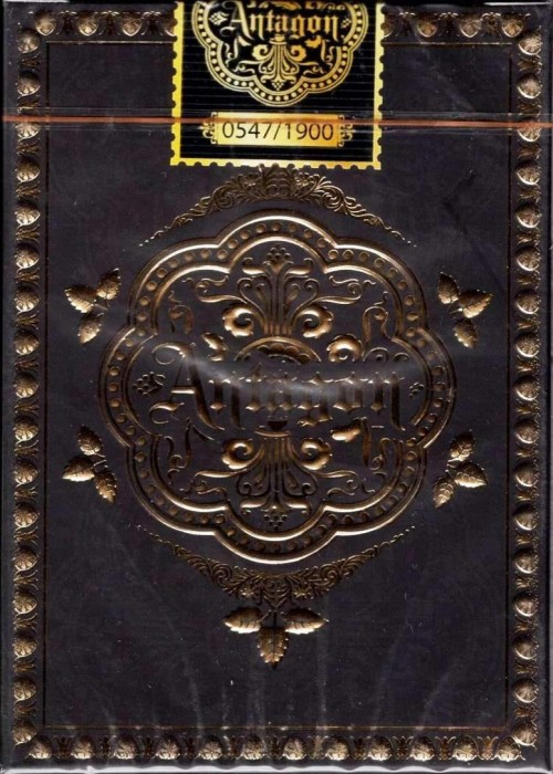 Antagon Royal Playing Cards, designed by SixtyFourPlayingCards, is a unique and elegant deck of playing cards for collectors, where the Court and the cards are all created with an original design. It is a limited and numbered edition. The tuck case is very luxurious with embossing and foil. The numbered cards are delicate, and this worn background reinforces their medieval inspiration. The back shows a traditional intricate design made with natural shapes. Printed and fulfilled by NPCC Noir Arts Custom Courts, Aces, Jokers and Pip layout 56 cards on 310 gsm premium German linen card stock In addition, a double back for magicians Tuck seals, numbered individually 240 gsm full color printed box Gold foiling Embossing 2018 Release
