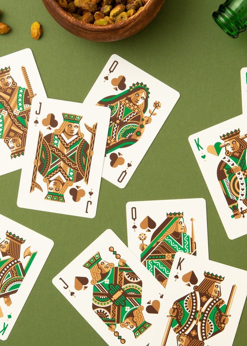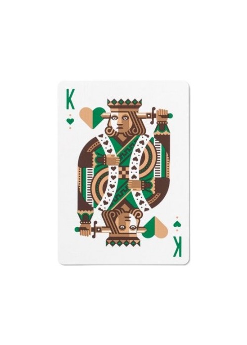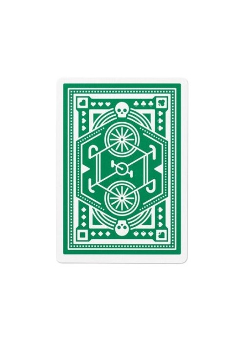 One of our most popular decks, now available in Green! Created in collaboration with California based creative studio, DKNG. Green Wheel Playing Cards offer a fresh interpretation of the classic Bicycle Rider Back. The updated design is crisp and playful and now, for a limited time, available in an eco inspired green and brown colorway. Featuring 54 custom illustrated playing cards printed by the US Playing Card Co. on our trademark thin-stock preferred by cardists. Housed inside a recycled tuck box and letterpress-printed in tonal brown. Sealed with a green tax stamp