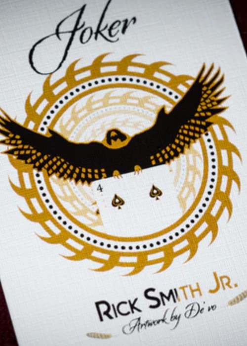 Kickstarter collaboration between 3 time Guinness World Record holder and magician Rick Smith Jr. and World Renowned card expert De’vo. This deck features a new stock cut developed by USPCC that enhances card throwing but is also perfect for normal card handling. This is the standard version that compliments the foil Collector’s version. The link the Kickstarter project is here: https://www.kickstarter.com/projects/1014462851/master-series-falcon-throwing-cards Full Deck Scan: https://cardscans.piwigo.com/index?/category/335-falcon_throwing_cards
