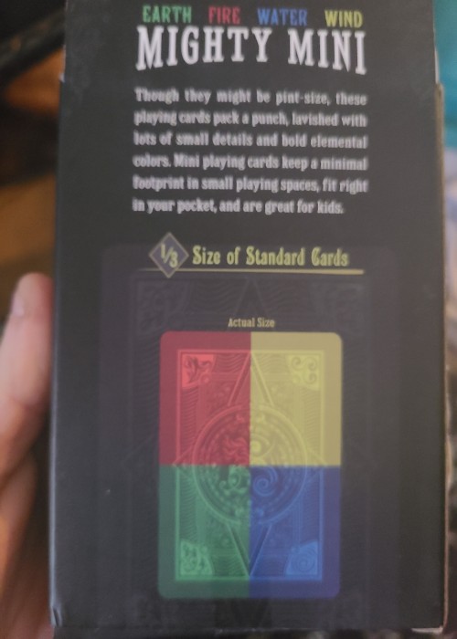 Four sets of mini cards. 1/3 size of standard cards. Earth = Green Fire = Red Water = Blue Wind = Yellow