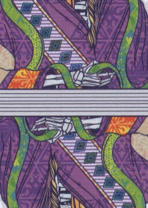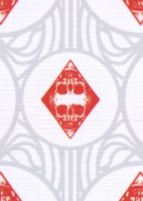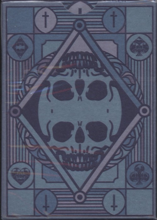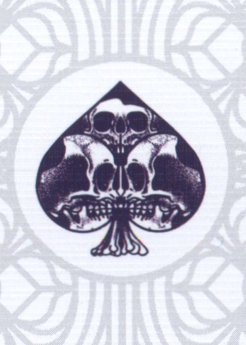 This deck was funded through a Kickstarter campaign https://www.kickstarter.com/projects/musketon/graveyard-a-super-creepy-and-detailed-deck-of-card . The premium edition has an embossed tuck box and the card backs have foil. My scan doesn’t show the foil well but it really looks great in person.