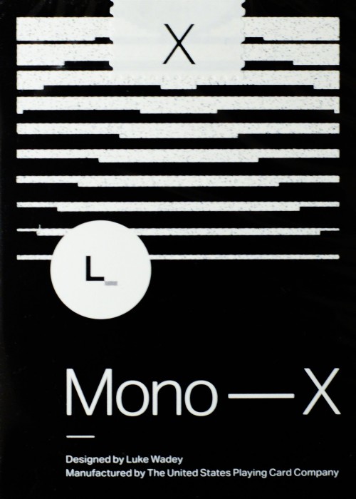This is the first deck of mono series by Luke Wadey. Main features of this deck include use of different thickness of lines and shades of a single colour to create unique design for cardists and magicians. There are features for fans on backs as well as card faces. Each deck has a custom post stamp style seal, that is not numbered.